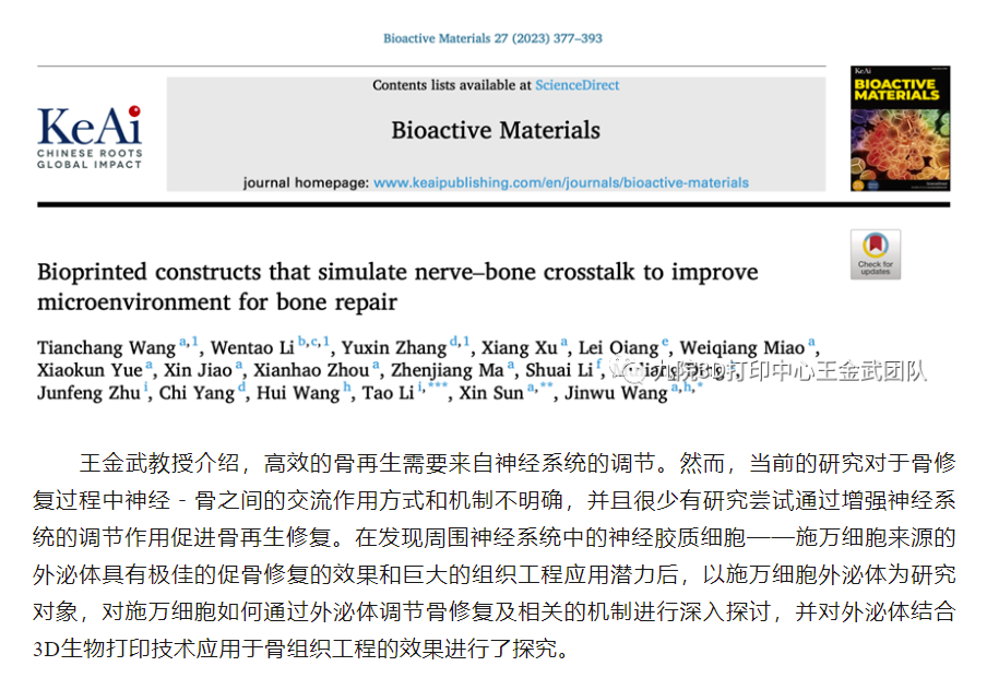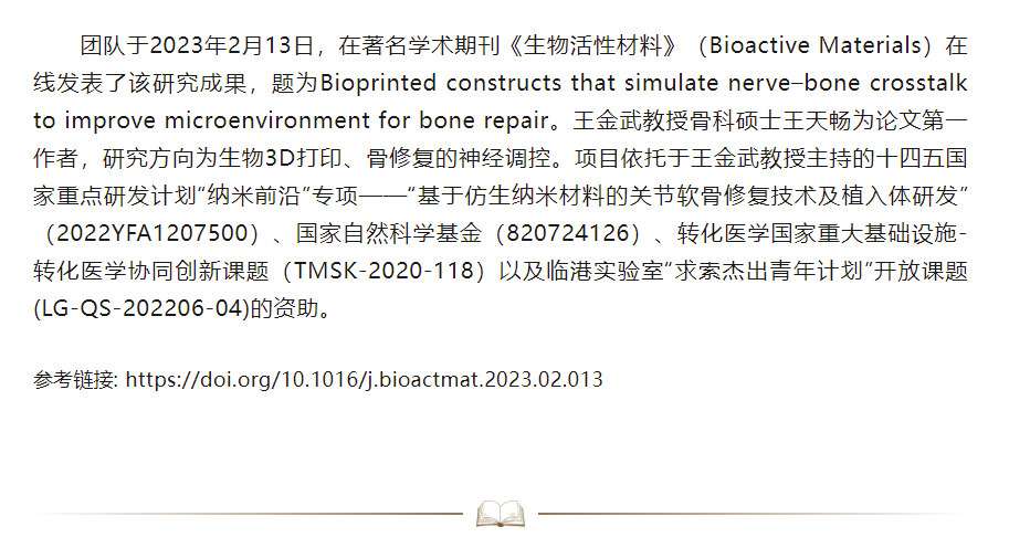 3D生物打印构建神经活性的骨组织工程仿生支架——王金武教授、戴尅戎院士团队聚焦神