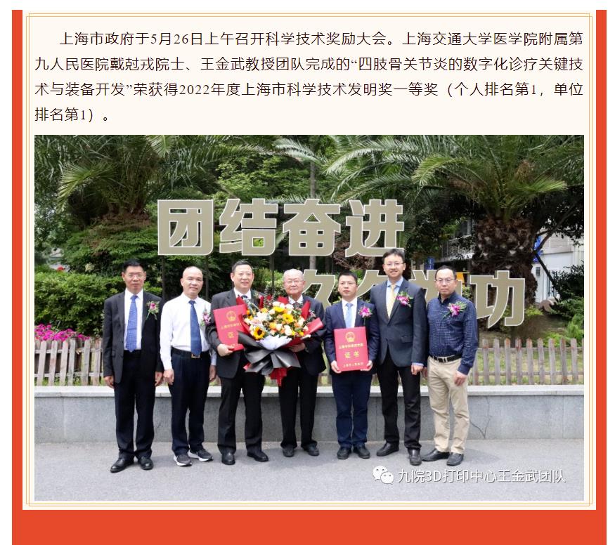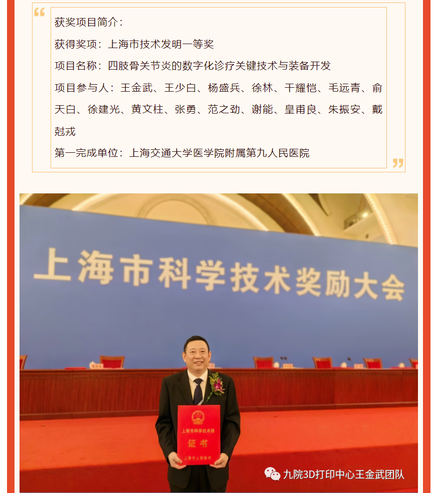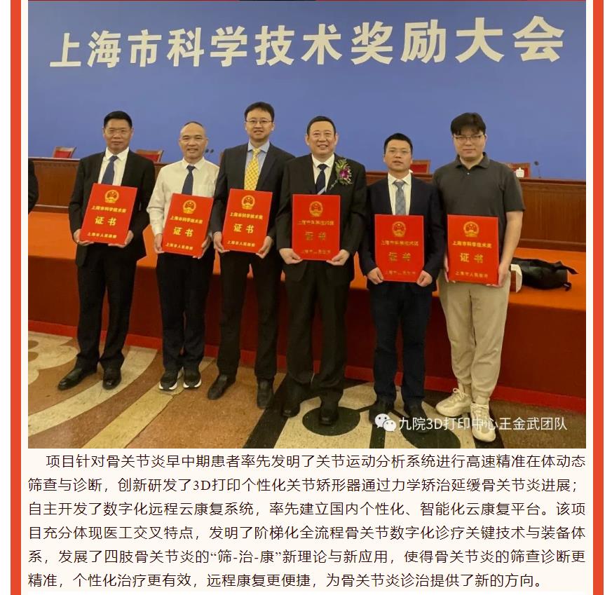 【喜报】戴尅戎院士、王金武教授团队完成的“四肢骨关节炎的数字化诊疗关键技术与装备