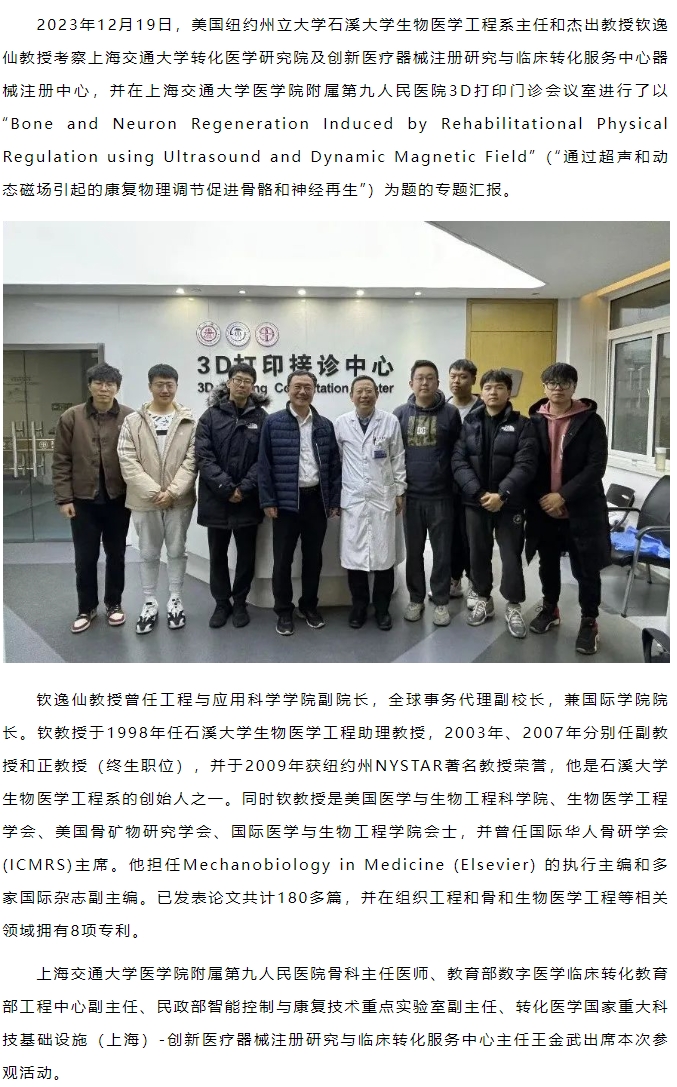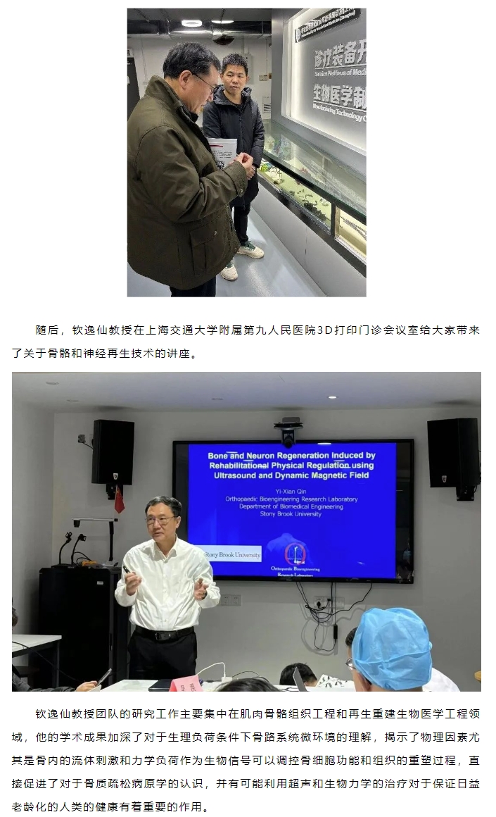 美国纽约州立大学石溪大学钦逸仙教授莅临上海交大转化医学国家重大科技基础设施及转化